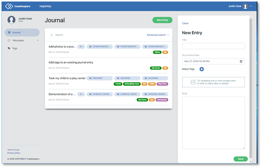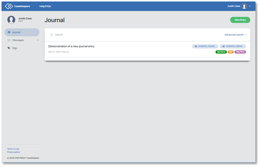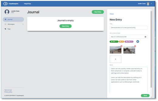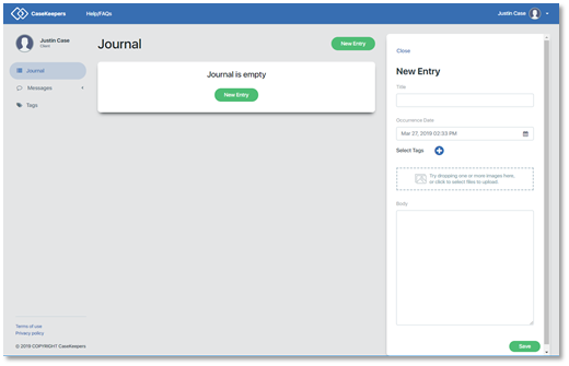 Give the journal entry a meaningful, but short title. This is not required. If you don’t enter a title, CaseKeepers will use “Untitled journal entry” as a default title for the entry.