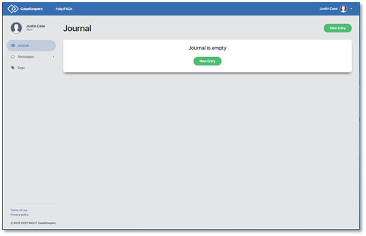 When you have one or more entries in your journal, the Journal page will appear as follows. Click New Entry.
