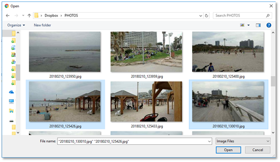Alternatively, you can click on the box labeled “Try dropping one or more images here, or click to select files to upload”. This will open the File Manager. Find the desired photo or photos. Click on them to select them.